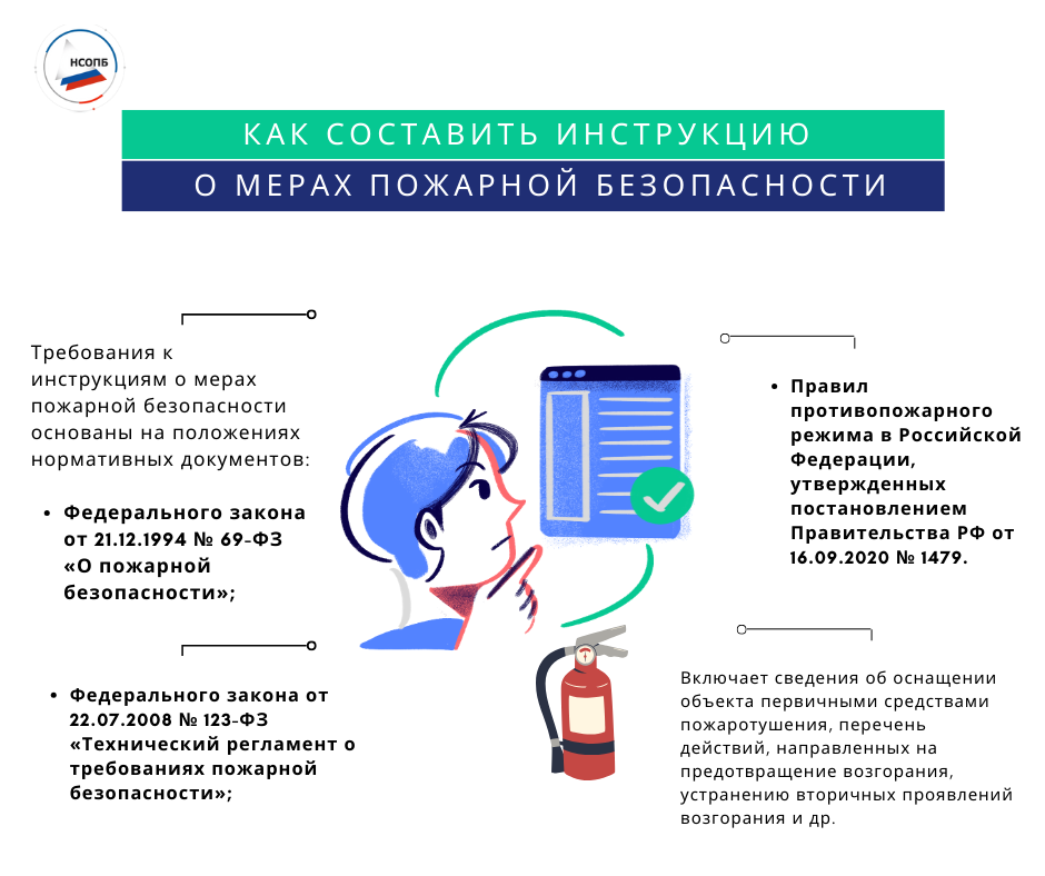 Инструкция о мерах пожарной безопасности — это ключевой документ, обеспечивающий пожарную безопасность на объекте. Она включает информацию об оснащении объекта первичными средствами пожаротушения, порядок действий для предотвращения возгорания, устранения его последствий и тушения пожара до прибытия экстренных служб. Все организации обязаны разработать такую инструкцию.