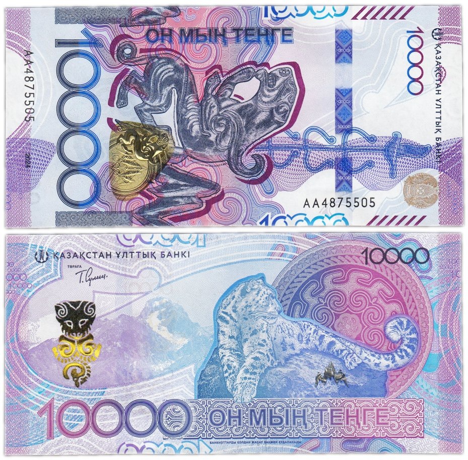 В сентябре 2024 году Национальный банк Казахстана выпустил в обращение банкноты номиналом 10000 тенге нового дизайна. Это вторая банкнота из серии «Сакский стиль». Серия банкнот «Сакский стиль» в Казахстане состоит из шести купюр номиналом от 500 до 20 тысяч тенге. Первая банкнота была выпущена 25 декабря 2023 года номиналом 5 тысяч тенге. В конце 2024 года появилась купюра номиналом 2000 тенге. Выпуск остальных банкнот из этой серии планируется поэтапно в течение нескольких лет: - банкноты номиналом в 2000 и 1000 тенге — в 2024 году; - банкноты номиналом в 20 000 и 500 тенге — в 2025 году Банкноты посвящены сакской культуре и передают самобытность воззрения предков, их связь с природой и животным миром. На купюрах номиналом от 500 до 20 тысяч тенге изображены представители фауны Казахстана — лошадь, архар, беркут, сайгак, тазы. Центральными изображениями лицевой стороны являются: - ветвь «Древо жизни» с парящей птицей - спираль ДНК и стилизованный под орнамент символ бесконечн