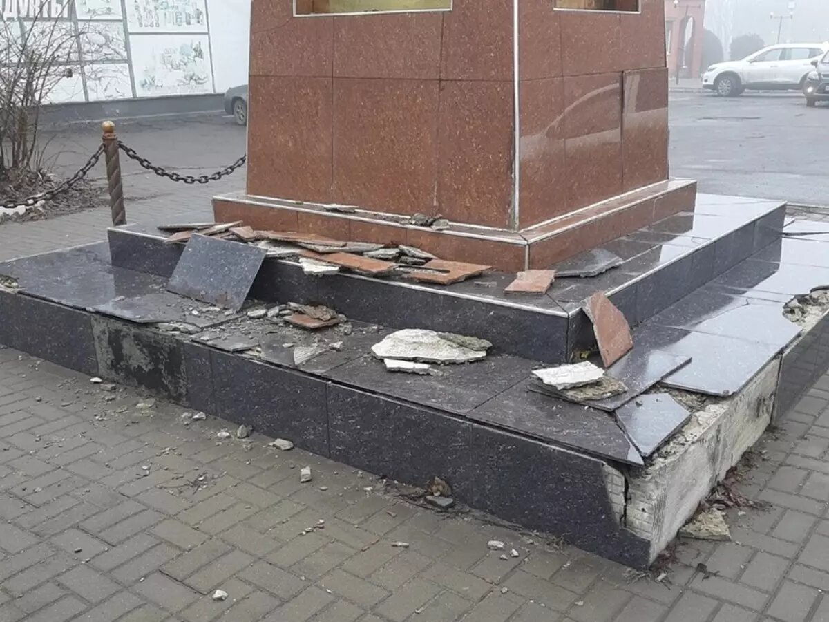 В Ростовской области разрушается памятник основателям города Зверево. Фотография с обвалившейся плиткой на постаменте появилась в социальных сетях 27 января.