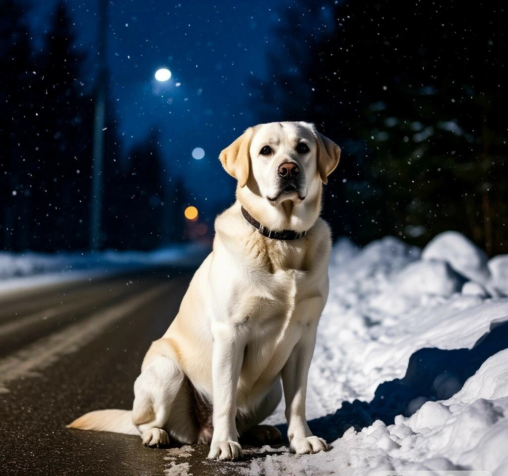 "Да это же пес! Абсолютно белый и невероятно огромный лабрадор. Что он здесь делает, на безлюдной трассе в полном одиночестве?"