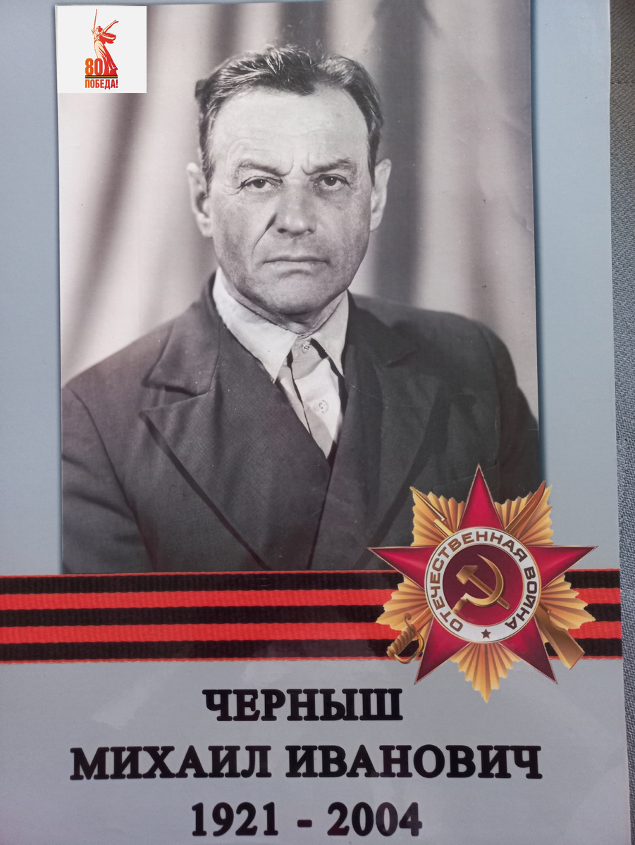 Сегодня мы публикуем рассказ Анастасии Семененковой о ее прадедушке Михаиле Ивановиче Черныше: Родился он в 1921 году в Амурской области Ивановском районе с. Черкасовка. Воевал на фронте с 1943 года, и как воевал: 26.04.1944 Орден Славы 3 степени 31.01.1945 Орден Славы 3 степени 18.02.1945 Орден Отечественной войны 2 степени 03.03.1945 Орден Красной звезды 06.03.1945 Орден Отечественной войны 1 степени 06.04.1945 Орден Отечественной войны 2 степени 09.05.1945 Медаль «За победу над Германией в Великой Отечественной войне 1941-1945 гг.» В наступательных боях против немецких захватчиков, 23 марта 1944 г за село Александровку, смело выдвинулся вперёд со своим расчётом и уничтожил огнём своего пулемёта 2 огневые точки ручного пулемёта противника с их расчётами, при отражении контратаки противника (с танками), наносил врагу огромный урон в фронтовой силе, при этом лично сам старший сержант Черныш из своего пулемёта уничтожил до 20 вражеских солдат и офицеров. 18 января 1945 года в бою в