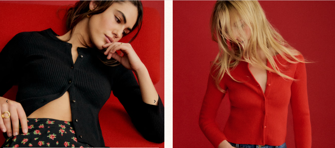 Именно к такому вывод, друзья, я пришла после прогулки по отделу "Трикотаж" на сайте sezane.com. От изящных ажурных вещиц в винтажном стиле, много раз описанных мной в предыдущих статьях, бренд перешёл к более практичным техникам в вязании. Например, вязаные кофточки-"лапша": ...или уютные вещицы из мягкой пушистой ангоры: Они уютны и милы, поэтому их хочется купить (в нашем случае — связать 😊). Другое дело — модель ниже. Так он выглядит в насыщенном кирпичном цвете. Вырез "под горлышко", длинный прямой рукав с ажурным кружевом вместо манжеты и 12 пуговок в тон основному цвету. Тонкая, изящная работа крючком. Выполнить такую самостоятельно захочется