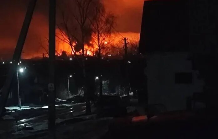SHOT опубликовал видео пожара на нефтезаводе в Кстово после атаки БПЛА ВСУ