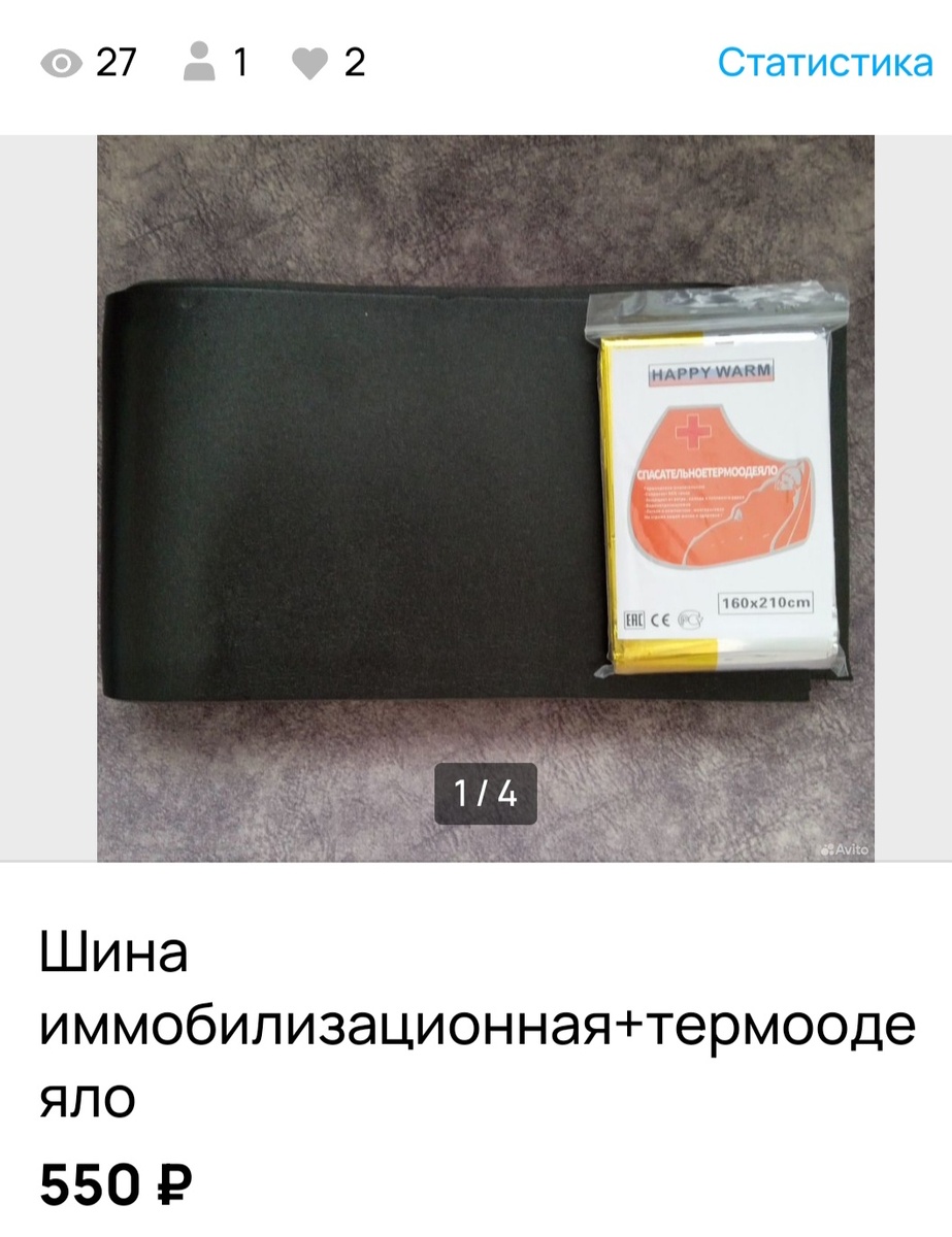 Всем доброго времени суток! Заказов на авито нет совсем, даже просмотры минимальные. Только один заказ в пути, да и на него авито срок доставки продлил. Надо обновлять профиль. Но что-то не хочется, лень наверное. Решила для себя, что займусь этим на выходных. Может погода так влияет. Скоро остатки снега растают и это январь! В том году снега было по пояс, а в этом его дефицит. Я мужу говорю, что снега нет потому, что ты купил снегоуборочную машину 🤣. Ладно, отвлеклась. Расскажу про архивную продажу сентября 2024 года . А продала я иммобилизационную шину и термоодеяло. Транспортная иммобилизационная шина 100 см для фиксации конечности при перелома, выводах, ранении. Шина моделируется по длине и полноте конечности и крепление производится с помощью бинтов. Спасательное термоодеяло в комплекте 160*210 см. Разместила в категории красота и здоровье - медицинские изделия ещё в декабре 2023 года за 600 рублей. Затем цену снизила до 550. Просмотры минимальные. Но все таки в сентябре этот