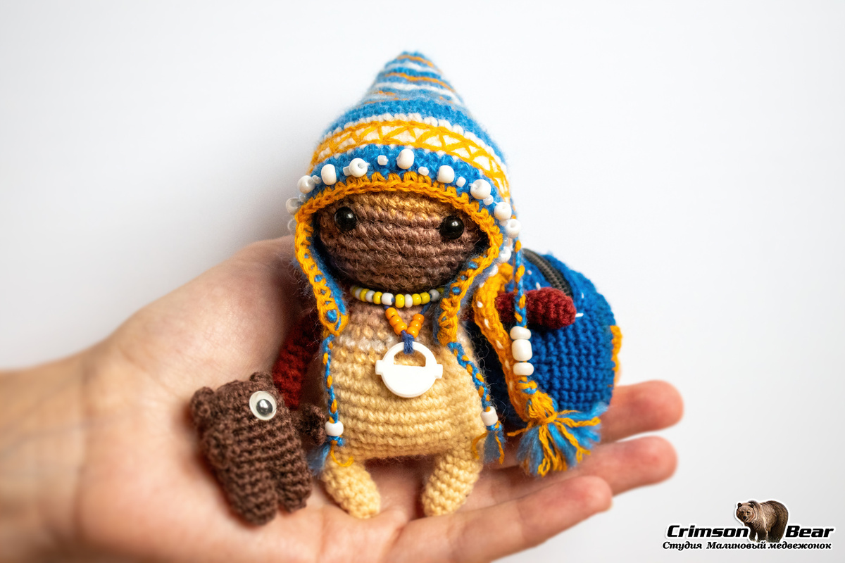 Внимание! Данный материал является авторской разработкой. При публикации фото изделий или продаже игрушек, связанных с использованием этого мастер-класса, обязательно должно быть указано: Связано по МК Елены Горковенко (Студия "Малиновый медвежонок"), https://t.me/crimbe, https://handmade55.ucoz.ru/ или https://vk.com/crimbe Передняя и задняя стенки (2 детали) Набрать 15 ВП и провязать по ним 14 СБН; 10 поворотных рядов по 14 СБН (с петлями подъема); з ряда с убавкой в начале и в конце ряда. Передний карман Набрать 15 ВП и провязать по ним 14 СБН; 6-8 поворотных рядов по 14 СБН (с петлями подъема) Лямки (2 детали) Набрать 21 ВП; Провязать 2 ряда с поворотом Ручка Набрать 11 ВП и провязать по ним 10 СБН Сборка Сложить вместе деталь передней стенки и деталь кармашка. Начиная с любого угла, обвязать вместе детали по краю, соединяя таким образом карман и переднюю стенку. Далее продолжить вязать по кругу 4 ряда СБН. Отметить место, где будет располагаться молния, довязать до этого места и н