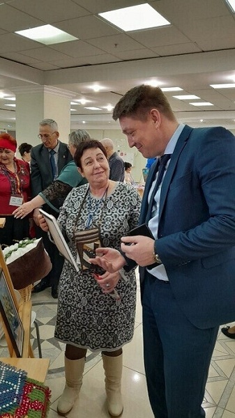 Но на той выставке областной не было подобных ни одной. Поэтому, наверное, многие интересовались процессом их создания. И не буду скрывать, что я с удовольствием передавала им свои знания. И вот в этом месте у меня сегодня появилась причина ещё немного похвастаться: моя картина нитками "Исполнитель желаний" привлекла внимание даже министра труда и социальной защиты Пензенской области. Уж простите мне мою нескромность))