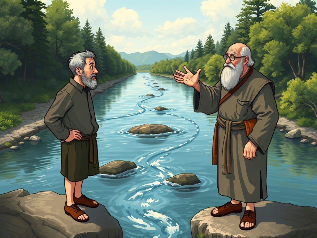 Жил когда-то в одной деревне человек, которого все считали дураком. Он был добрым и простодушным, но его поступки часто казались странными и нелепыми. Однажды он решил отправиться на рыбалку к реке. Придя на берег, он увидел, что вода в реке течёт очень быстро. Дурак подумал: "Если я брошу сеть прямо здесь, рыба не успеет попасться — её сразу унесёт течением." Тогда он решил перейти реку и забросить сеть на противоположном берегу. Дурак начал переходить реку, но вскоре понял, что течение слишком сильное и ему трудно удержаться на ногах. Вода доходила ему до пояса, и он едва не терял равновесие. Наконец, он добрался до середины реки и встал на камень, чтобы перевести дух. Стоя на камне, дурак задумался: "Зачем я вообще перешёл реку? Я ведь хотел поймать рыбу, а теперь стою посреди реки и ничего не делаю." Он посмотрел на другой берег и заметил, что там тоже сильное течение. Тогда он сказал себе: "Если я вернусь обратно, то потеряю время и силы, которые потратил на переход. Лучше я до