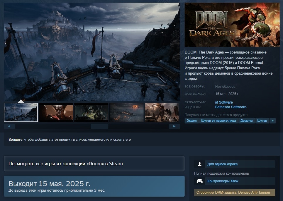 На странице шутера Doom: The Dark Ages появилось упоминание об использовании защиты Denuvo. Это стало неожиданностью для многих геймеров, ведь предыдущая игра от Bethesda, Indiana Jones and the Great Circle, не использовала никакой защиты.