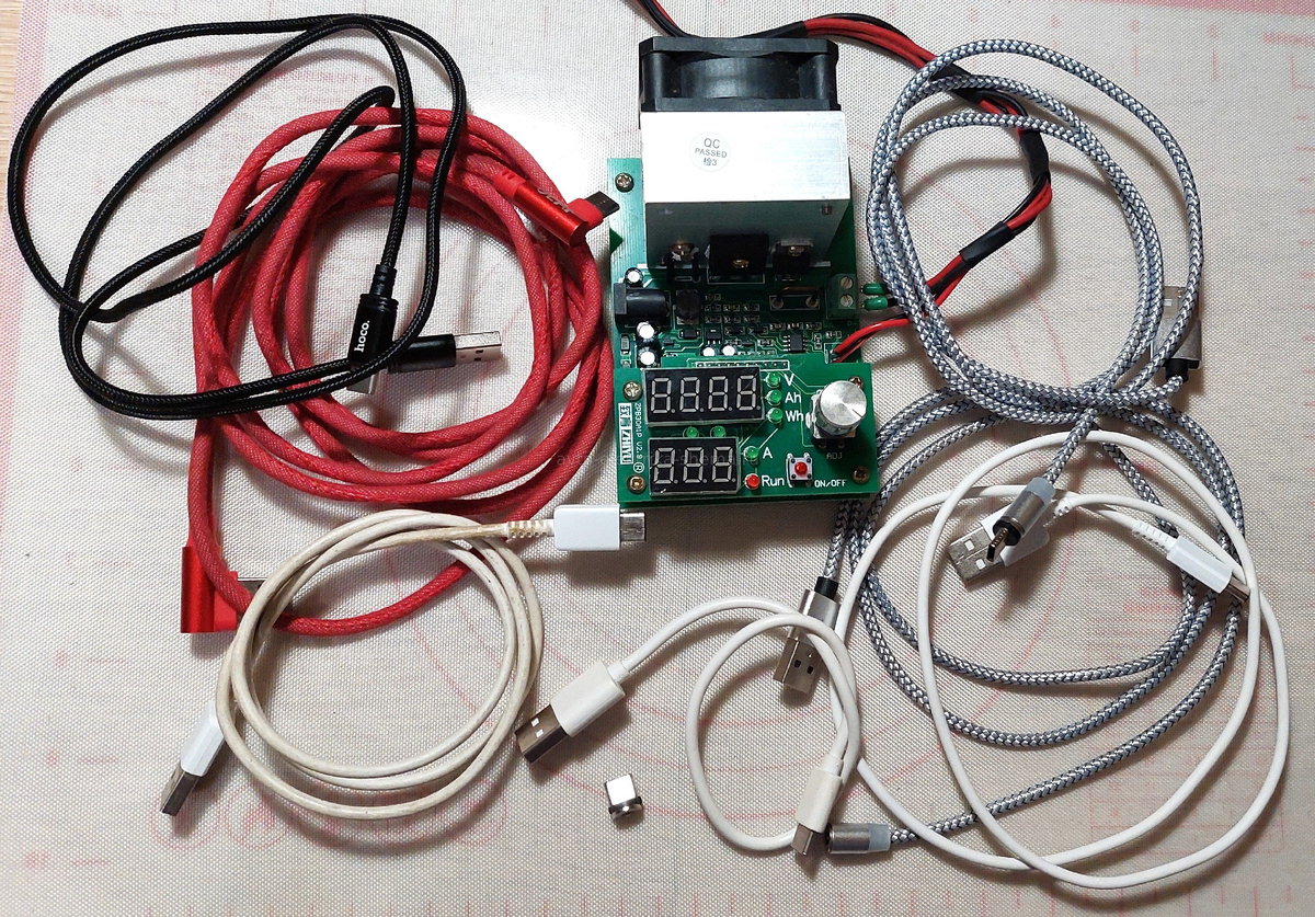 Провёл небольшой тест кабелей USB Type-C для зарядки смартфона при помощи электронной нагрузки и мобильным приложением. В тесте участвуют два оригинальных кабеля популярных брендов, самодельный, с магнитным креплением и ещё несколько дешёвых с интернет магазина. Замер напряжения происходит в двух точках, перед кабелем (Uвх) и после (Uвых). На Uвх всегда поддерживается напряжение 5.0 вольт, а на выходе измеряется напряжение при различной нагрузке 0.2 А, 0.5 А, 1 А, 1.5 А, 2 А. Чем напряжение больше падает, тем хуже кабель будет заряжать смартфон. Победили конечно же оригинальные брендовые кабеля, даже не смотря на то, что один из них отработал несколько лет. Результаты теста с таблицей можно посмотреть на странице сайта: https://www.avto-elektrika-shema.ru/index/test_kabelej_usb_type_c_dlja_zarjadki_smartfona/0-682