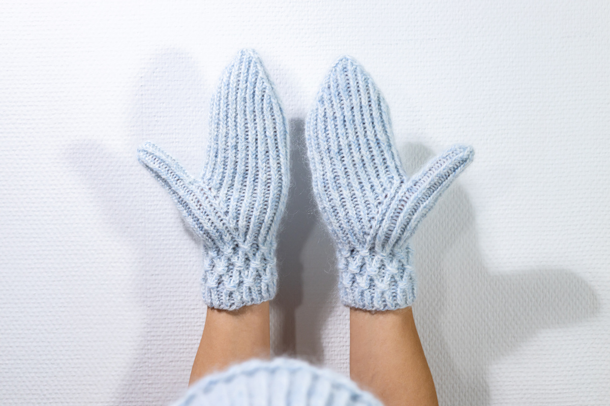 Для вязания понадобится: - 1 моток пряжи Alize Angora Gold цвет 55, в 100 гр. 550 м., состав 20% шерсть, 80% акрил; - 1 моток пряжи ALIZE 3 Season цвет 55, в 100 гр. 500 м., состав 25% мохер, 24% шерсть, 51% акрил; - 2 мотка пряжи Alize Kid Royal, цвет 183, в 50 гр. 500 м., состав 62% кид мохер 38% полиамид. Всего у меня получается: 1 нить Alize Angora Gold, 1 нить ALIZE 3 Season и 2 нити Alize Kid Royal, что получается 300 гр пряжи и длина 500 м. или 165 метров в 100 гр. Вы можете использовать любую пряжу аналогичной толщины. На варежки у меня ушло 80 гр. пряжи. Длина варежки 26 см, ширина одной стороны 9 см, в окружности 19 см. Также понадобятся чулочные спицы № 3,5 5 шт, крючок №3, трикотажная игла. Расчет я делала исходя из того, что в 1 см 2 петли, а в высоту в 1 см 2.1 ряда. Подробный мастер класс о вязании Варежек можно посмотреть по ссылке: https://dzen.ru/video/watch/6799fe2f26d5cb05b085c08d Набираем 41 петлю, 40 для вязания и 1 для замыкания вязания в круг. Распределяем по 10