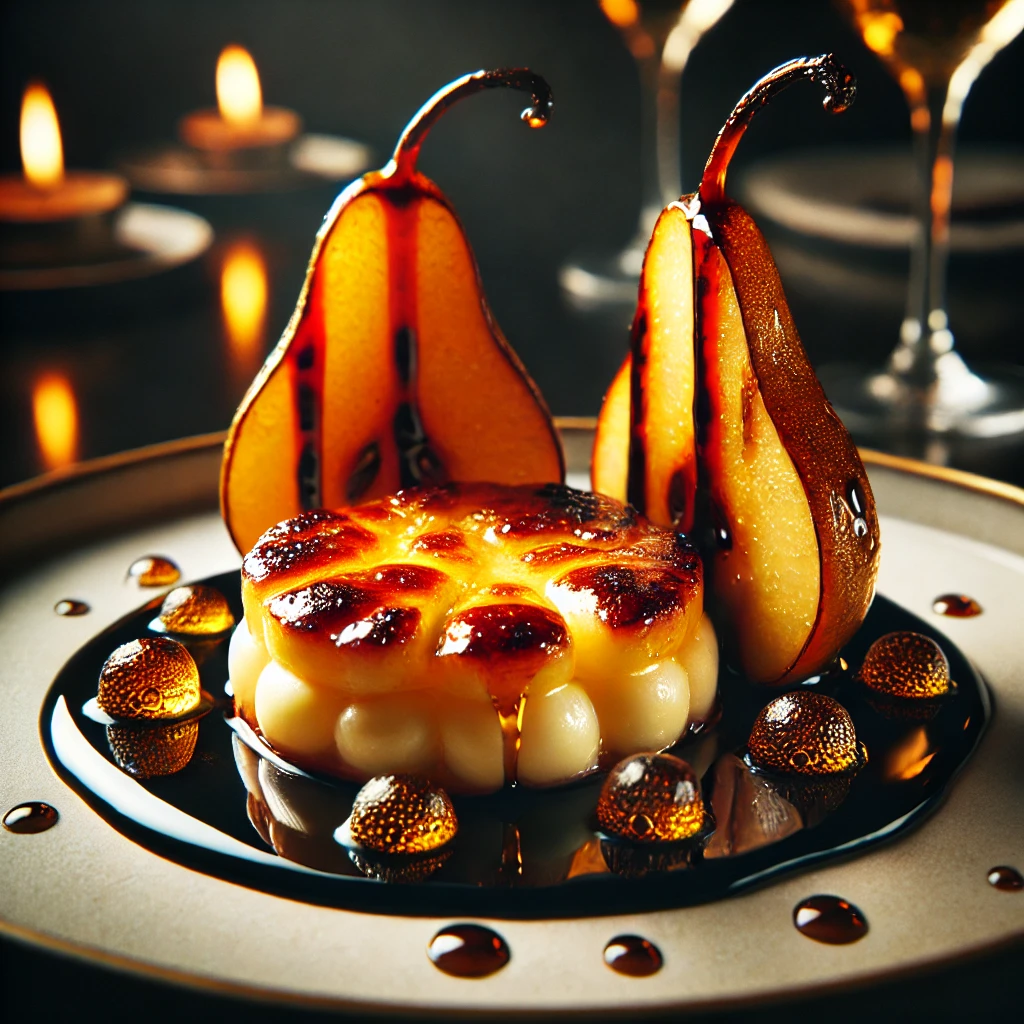 Ингредиенты: Это блюдо сочетает нежный сыр, сладкие карамельные ноты груши и ароматный чайный соус с пряными оттенками. Отлично подойдет как десерт или закуска.