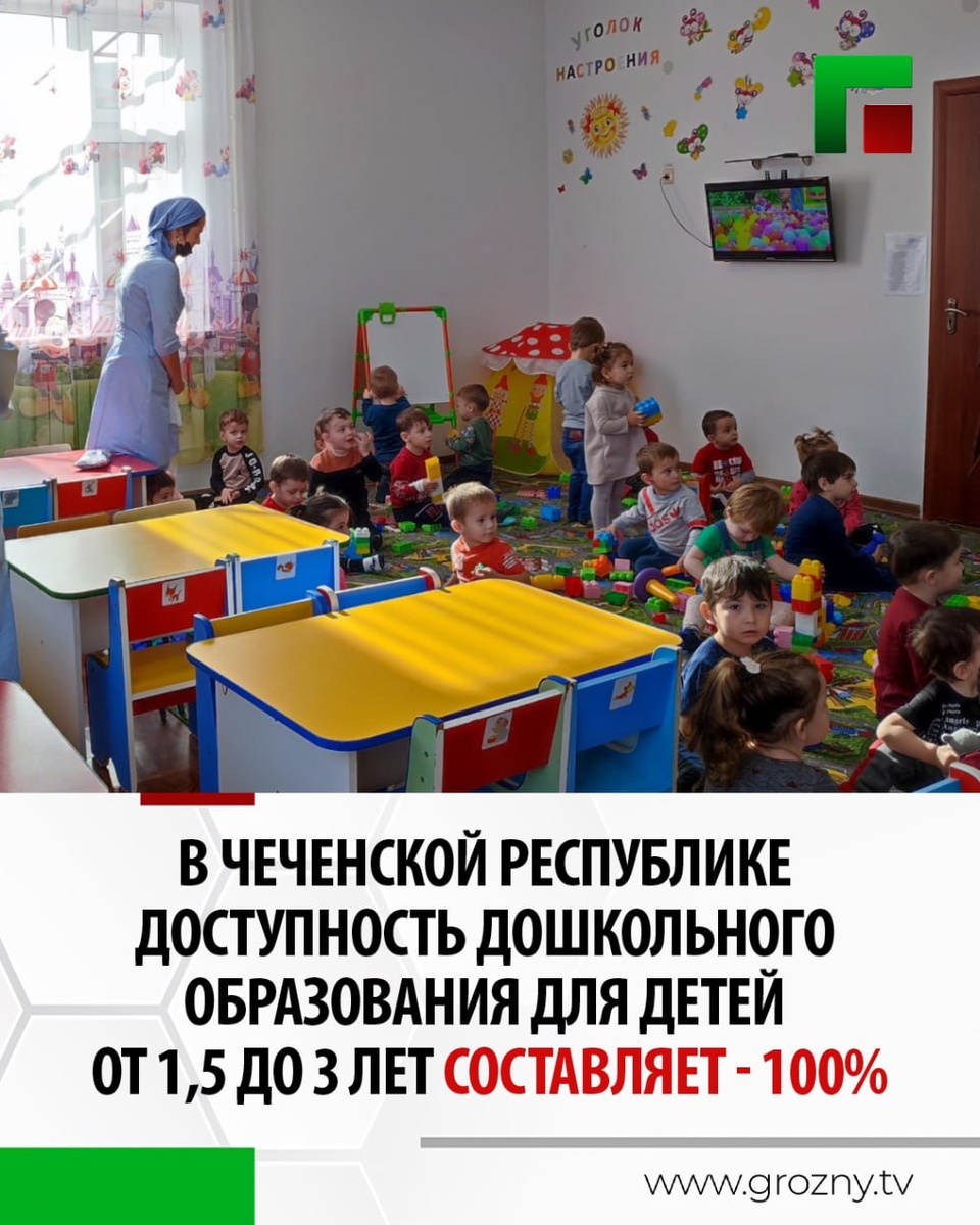 В Чеченской Республике доступность дошкольного образования для детей от 1,5 до 3 лет составляет - 100%