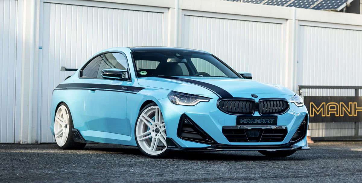 Что? BMW M240i — это просто "младшая" версия M2? Немецкое ателье Manhart решило доказать, что потенциал 3 л двигателя еще очень далек от возможного предела. Manhart MH2 500 — купе, которое по мощности переплюнуло даже "старшенькую" M2. С завода BMW M240i имеет всего 374 л.с. Но в версии от Manhart этот автомобиль имеет демонические 503 л.с. — цифра, которая на 23 "лошадки" выше, чем у M2. Все это благодаря серии доработок: здесь новый интеркулер, альтернативный впуск, кастомный блок управления и выхлоп из нержавейки. Что в итоге? Мотор разгоняет этот компактный спорткар с огромным потенциалом (как доказали ребята из Manhart), а крутящий момент вырос до 633 Нм против 600 Нм у M2. Manhart не остановились только на двигателе. Для подвески предложено два варианта апгрейда. Первый — койловеры KW Variant 3 с возможностью точной регулировки. Второй, более бюджетный вариант, — установка альтернативных пружин от H&R. На демонстрационном экземпляре представлены 20-дюймовые диски Concave One, но