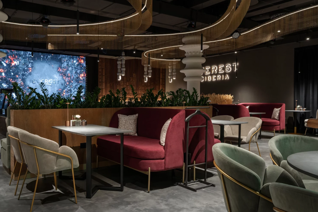Средний чек: 2900 рублей У метро «Маяковская» открылся двухэтажный проект Everest Siberia с вечеринками, кальянами и полноценной кухней. В интерьере преобладают натуральные материалы и оттенки. Здесь резное дерево, растительные орнаменты, колонны и необычные люстры. В меню «Эверест Сиберия» — популярные блюда разных стран: паста и ризотто (от 850 руб.), пельмени (от 800), бургеры (от 1000), стейки (от 950). Отдельный раздел для сибирской кухни: обязательно попробуем тартар из вырезки оленя (3000) и строганину из муксуна (1700). По утрам (10:00-14:00) подают завтраки: каши, яйца, драники, блины и другие утренние блюда (от 600). За баром готовят коктейли на игристом (1200), сауэры (1200), гимлеты (1100), хайболы (1200) и не только. Предложат и лаконичную подборку вина (бокал — от 900). Кальяны