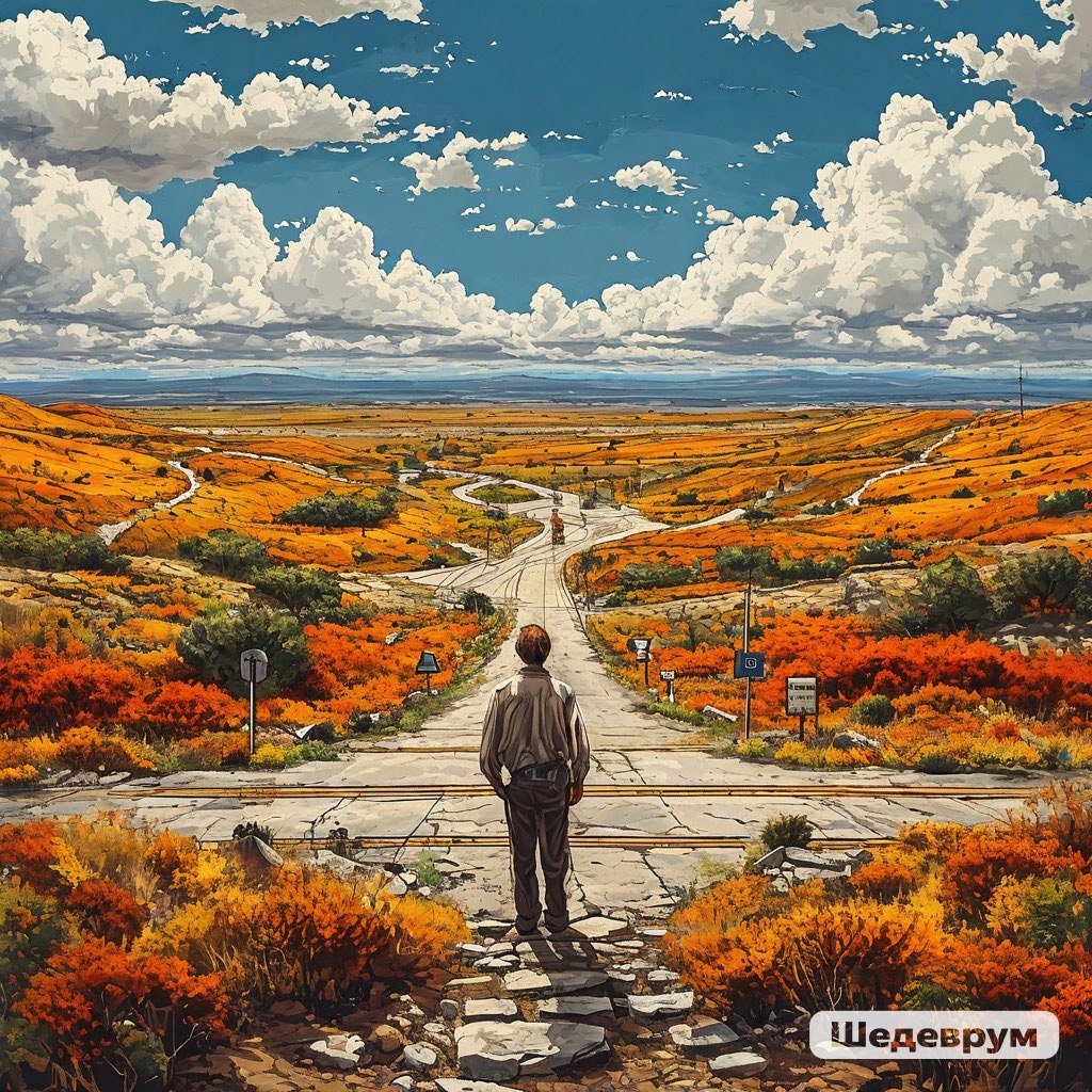 Есть у нас такая поговорка, когда человек становится безразличным, ему указывают на направление, в котором нет ограничения. Это же состояние, можно испытать, когда в самом человеке рождается желание. Желание, суть некой потребности, зачастую это желание лишь чувство, что нет возможности вместить в фразу, смысл. Оно скрыто от него самого, логическими обоснованиями, осознанностью того, что именно он желает, порой невозможно понять. И тогда, перед ним открываются все четыре стороны света, чтоб он смог, методом проб и ошибок найти то, что объяснить, не в состоянии, даже самому себе. Куда пойти, что выбрать? Человек в этом состоянии встретит дилемму. Реализация желания без потери своей идентичности. Хочется остаться собой И реализация своего желания, в котором придется чем то пожертвовать в себе. "Мне нужно то, что у тебя есть, и я боюсь, что ты отвергнешь меня, поэтому я притворюсь, что меня все устраивает". Но это уже проявление человека, в его образованности, его способности верить в се