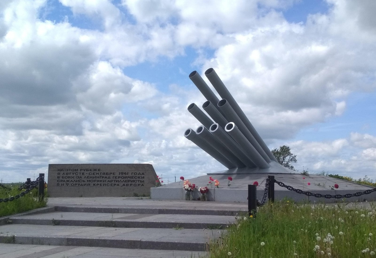 Памятник «Артиллеристам Авроры» построен в 1988 году, в память о артиллеристах батареи спецназначения «Аврора», оборонявших Ленинград в годы Великой Отечественной войны. Памятник — последний из 4-х, возведённых в середине-конце 1980-х г.г. в память о моряках-авроровцах. Находится в районе последних позиций 15-ти километрового фронта батареи «Аврора», — 8 и 9 орудий, — которые располагались неподалёку от несохранившейся ныне деревни Пеляля. Строительные работы велись по ходатайству совета музея крейсера революции «Аврора» и районного отделения общества охраны памятников истории культуры на основании решения Гатчинского райисполкома в 1988 году. В строительных работах участвовали коллективные члены общества охраны памятников: совхоз «Верево», Пригородная ПМК-8, Госплемзавод «Лесное» и военнослужащие. В 1990-х годах при межевании земель Петербурга и Ленинградской области памятник стал фактически бесхозным. По состоянию на август 2015 года памятник не являлся объектом культурного насле