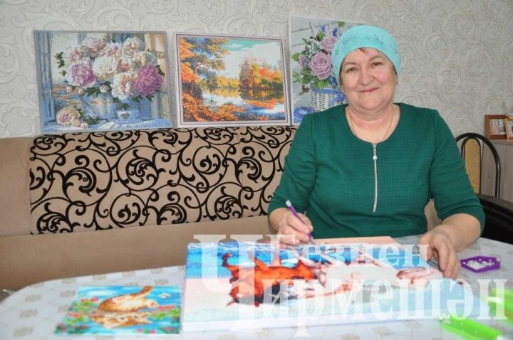 Жительница села Ибрай Каргали Гульшат Камалетдинова два года назад увлеклась созданием картин из алмазной мозаики. Гульшат Сайфулловна и раньше была мастерицей-рукодельницей, вязала кофты, юбки, шали, башмаки, научилась вязать крючком банные мочалки. - Когда растила детей, вязала много, сейчас в этом нет необходимости, ведь вязанные вещи практически не одеваем, - поделилась моя собеседница. - Честно говоря, мое новое увлечение появилось после смерти мужа, когда осталась одна. Внуку на день рождения подарили небольшой набор для картины из алмазной мозаики, а он еще маленький, чтобы собирать ее. И я решила попробовать сама, вот так и увлеклась. Мастерица создала уже 11 картин. Она любит выкладывать мозаикой пейзажи природы, где изображены разные времена года. - Больше всего мне нравится зимняя природа, - сказала Гульшат Сайфулловна. - В этой картине использованы алмазы 38 цветов, а на первый взгляд кажется, что цветов не так много. Гульшат апа дарит свои картины, есть желающие и купить и