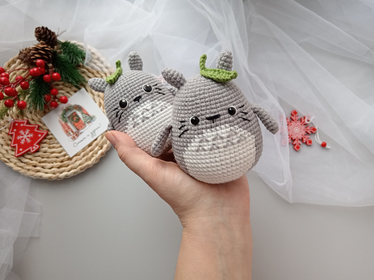 Хочу сегодня поделиться с вами своей схемой вязания, сразу извиняюсь за возможные опечатки и ошибки. 🫶 Для вязания я использовала пряжу yarn art jeans, игрушка у меня получилась около 10см. Для вязания нам необходимы: -основной цвет 49, -для животика 01, -для листика 69, -крючок 1,75, -глазки слепленные из полимерной глины (8-9мм) или на безопасном креплении 6мм, -чёрная нить для вышивания усов и носика у меня vita coco. Вязание начинаем с лапок. 1) 6сбн в КА. 2) (1сбн, пр) *3 3-7) 9сбн (5 рядов) Сложить деталь пополам и провязать 4сбн захватывая петли обеих сторон детали. Нить закрепить и отрезать, аналогично связать вторую лапку. Тело: 1) 7сбн в КА. 2) 7 пр. (14) 3) (1сбн, пр)*7 (21) 4) 1сбн, пр, (2сбн, пр) *6, 1сбн (28) 5) (3сбн,пр)*7 (35) 6) 35 сбн 7) 2сбн, пр, (4сбн,пр)*6, 2сбн (42) 8) 42 сбн 9) (5сбн,пр)*7 (49) 10-12) 49сбн (3ряда) 13) 3сбн, пр, (6сбн, пр) *6, 3сбн (56) 14-16) 56сбн Если будете вывязывать лапки, то ввязываем между 16 и 17 рядом, я пришивала лапки, так прощ