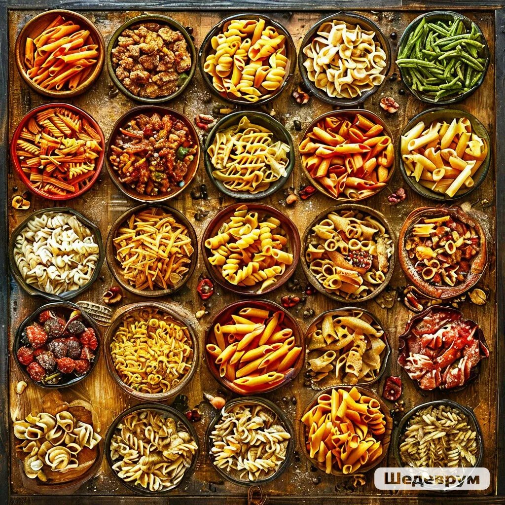 Это лишь некоторые из множества видов макарон, которые можно найти на полках магазинов.