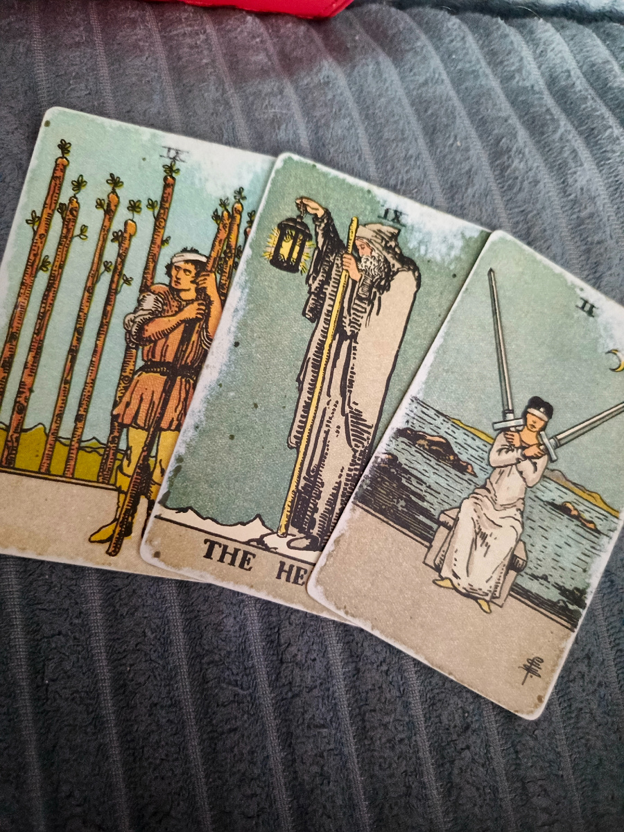 Выявляем наличие магического воздействия на мужчину от определенной женщины. Вышли 9 посохов, отшельник, 2 мечей. Воздействие однозначно есть. Магия сделана на то, чтоб мужчина отдалился от своей жены, ушел в себя, держал оборону. Работа сделана одна, но надолго. Произошло закрытие сердца и разума мужчины.
