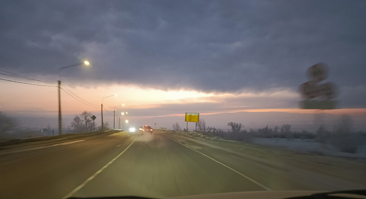 В течении недели мне можно каждый день плакаться на наши морозы. Стабильные -35-37 с утра, а днем пока не выше -25. Но вам наверное уже давно надоело мое нытье, так что покажу нашу морозную красоту. День с утра уже заметно прибавился, и в школу мы едем не в кромешной тьме. Каждое буднее утро наблюдаем восход солнца. Оно медленно выползает из-за сопок, а его свет расползается в облаках. Это очень красиво. Довозим Саву до школы, и обратная дорога уже показывает нам другую красоту. Утренний морозный туман оседает на деревьях нежной бахромой, и это тоже красиво! Любуюсь, потому что еду в машине и мне тепло. А люди на остановках завернулись в шарфы, натянули капюшоны, ребятишки стоят как неваляшки, и им по-моему не до красоты, сесть бы в автобус. На дорогах очень скользко. Перед Крещеньем было два или три теплых солнечных дня, маленький минус, и этого хватило, что бы забайкальское солнышко подтопило снег. Заплакали сосульки на крышах, потемнели дороги, заскользили люди и машины. И вот пришл
