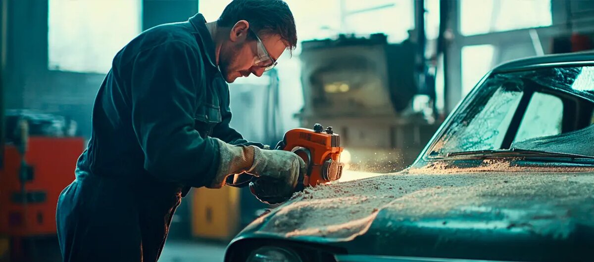 Пескоструйную обработку часто используют при реставрации кузова автомобиля или для удаления ржавчины с силовых конструкций — остова кузова и рамы.