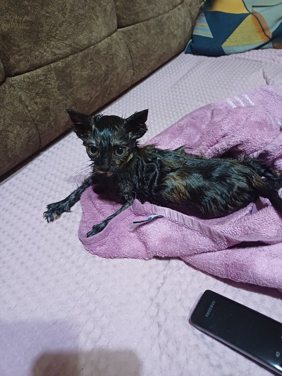 Привезли их на следующий день. Оказалось, что кто-то решил избавиться от мышей, намазав все специальным клеем. И к этому клею приклеились два крошечных котенка. Они не могли освободиться, поэтому их и не нашли сразу. Успели ли они нализаться этого клея - неизвестно, но, к счастью, никакой сильной интоксикации у них не было. Их ждало несколько процедур по выведению клея с шерсти. К счастью, после растительного масла и третьего мытья, следов от вещества не осталось.