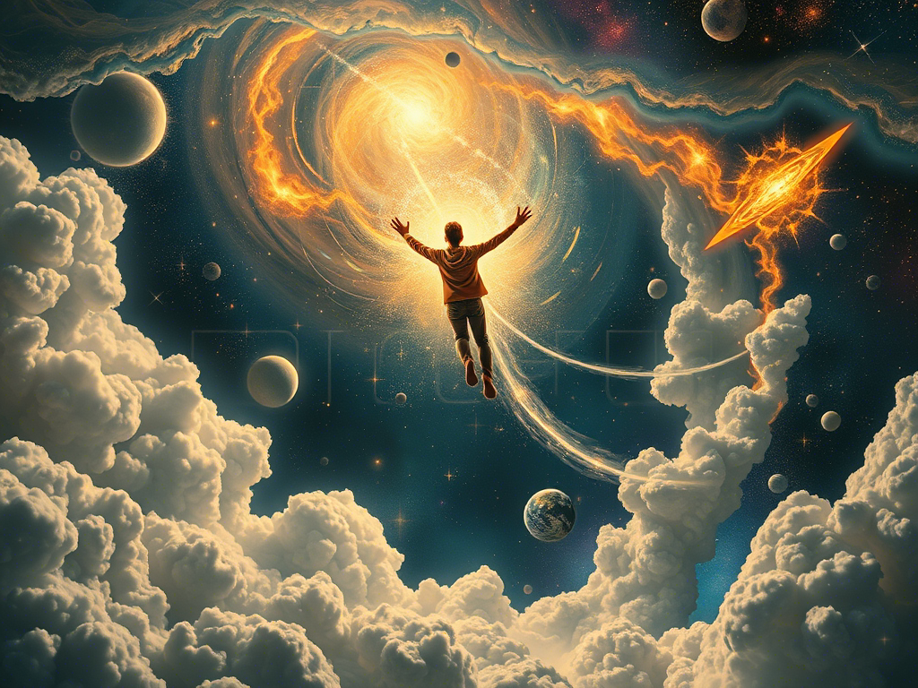 Он не помнил, как стал пылинкой в межзвёздном ветре. Возможно, его тело испарилось при пролёте через нейтронную звезду, или душа оторвалась от плоти ещё на заре цивилизации, когда люди верили, что звёзды — это глаза богов. Теперь он был Эоном — сгустком сознания, плывущим сквозь рукава галактик, искавшим то, что не имело имени. Его маршрутом были не координаты, а трещины в реальности. Он нырял в зоны тишины, где время сворачивалось в кокон, и слушал, как чёрные дыры поют хоралы на языке исчезнувших рас. Однажды, в туманности, похожей на раскрытую ладонь, он встретил Их. Существа из сплетённого света и антиматерии, они танцевали вокруг протозвёзд, оставляя следы в виде формул, которые тут же распадались. «Ты ищешь Сердцевину, — прошипело пространство, — но оно везде и нигде, как смех младенца в пустоте». Эон не ответил — у него не было рта, — но его мысль-искра пронзила туманность. Существа замерли, затем слились в единую спираль, увлекая его за собой. Они вошли в зону Квази-Вечности —