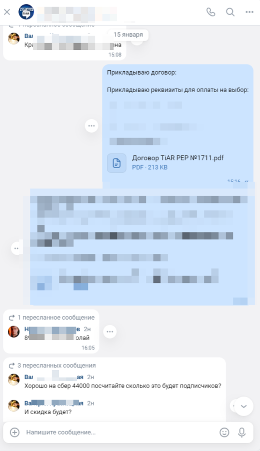 Реклама - это кайф. Она нужна всем и всегда. Всем, я имею ввиду тех, кто хочет развиваться, но есть в рекламе и обратная сторона медали. Неадекваты. Ничего не предвещало беды. Светлане написала некая Валерия. Светлана проконсультировала Валерию и она запросила договор и реквизиты для оплаты. Мы помогли Светлане подготовить документы и Светлана отправила их Валерии. Условия изменились, Валерия решила пересчитать стоимость договора и попросила рассчитать, сколько выйдет подписчиков на 44 000 рублей. Светлана даже не стала писать, а сразу позвонила нам, чтобы быстрее и быстрее всё просчитать. Вообщем Валерию устроил наш пересчет и скидка. Мы переделали договор, а дальше самое интересное. Валерия написала, что оплатила. Но проблема в том, что ни по одним реквизитам из договора - приходов не было. Счёт также пустой. Странно. Запросили скрин. Валерия ответила, что сейчас и далее спустя несколько часов добавила Светлану в ЧС. С такими приколами мы с 2012 года ещё не сталкивались. За