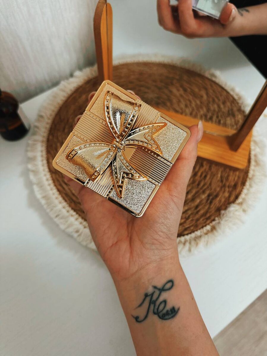 Красивая милая пудра. И на подарок не стыдно, и себе оставить )) Впитывает излишки себума, предотвращает появление жирного блеска и выравнивает тон. Текстура невесомая, не забивает поры. Мне понравилась.
