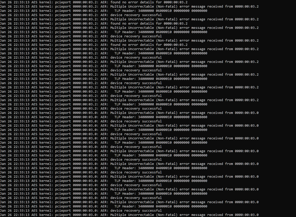 Jan 26 22:33:12 AES kernel: pcieport 0000:00:03.1: AER: Multiple Uncorrectable (Non-Fatal) error message received from 0000:00:03.1