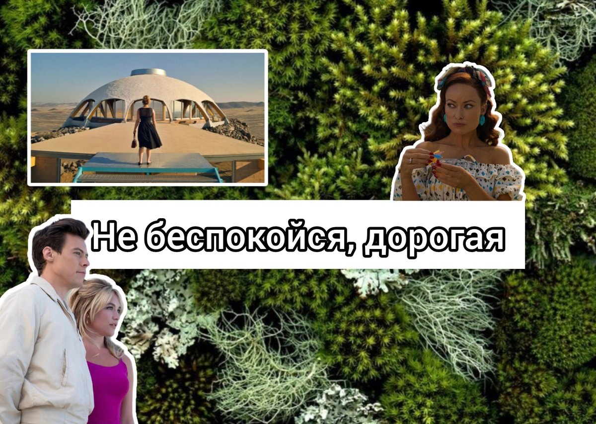 "Не беспокойся, дорогая" это американский психологический триллер 2022г. режиссера Оливии Уайлд по сценарию Кэри и Шейна Вайн Дайков, впоследствии переписанного Кэти Сильберман. Главные роли сыграли Флоренс Пью, Гарри Стайлз, Оливия Уайлд, Джемма Чан, Кики Лэйн и Крис Пайн. 1950е Джек и Элис живут в идеальном корпоративном городе, состоящем сплошь из дизайнерских домов. Пока мужчины работают над секретным проектом "Победа", их жены занимаются хозяйством, балетом и шопингом. А так же делают все, чтобы угодить мужьям. Однако со временем Элис начинает подозревать, что компания, в которой трудится Джек, скрывает ужасные тайны. Это фильм о патриархате и феминизме. Нереальный мир который мы видим показывает нам роль женщины в патриархальном мире. Желания и опасения женщин игнорируются или же переводятся в шутку. Освобождаясь из плена, героиня показывает свое право на выбор той жизни, которую она хочет, даже если эта жизнь не так безоблачна, как в идеальном городе. Посыл фильма довольно пря