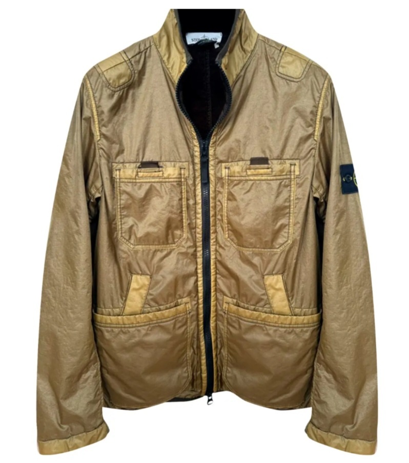 Stone Island Lamy Flock Multipocket Jacket AW2018 Куртка является переосмыслением классической рабочей куртки (по типу carhartt michigan) с множеством карманов: 2 накладных нагрудных на липучках велкро, 2 откртых накладных на талии, комбинированые с косыми карманами для рук. На плечах усиления из двойного слоя материала для наплечной сумки. Манжета снизу куртки, рукава регулируются кнопками. Молния по всей длине изделия. Куртка изготовлена из сверхлегкой нейлоновой ткани Lamy с флокированной внутренней частью. Флокированик- операция по нанесению мелко нарезанных,химически обработанных волокон, в данном случае внутренняя часть напоминает по текстуре велюр/бархат. Ткань прикреплена к клейкой пленке, к которой волокна нейлонового флока притягиваются и ориентируются магнитным полем. Изделие окрашено в готовом виде с использованием специальных рецептур красителей с добавлением покрытия антикапля. Куртка без утеплителя подходит для носки при темпереатуре от +10 до +15 градусов.