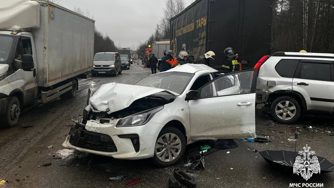 Днём 29 января в Калининском округе, на 1252-м километре трассы Р-132 "Золотое кольцо", произошло массовое ДТП. По информации регионального Управления Госавтоинспекции, столкнулись четыре автомобиля – фура MAN, грузовик "Луидор" и легковушки Nissan и Kia. При столкновении пострадал 61-летний водитель автомобиля Kia. В ГАИ отметили, что признаков алкогольного опьянения у водителей не было. Как сообщили в пресс-службе регионального МЧС, ДТП произошло в районе деревни Александровка. Последствия этой аварии ликвидировали сотрудники специализированной пожарно-спасательной части. Фото с места происшествия: ГУ МЧС России по Тверской области.