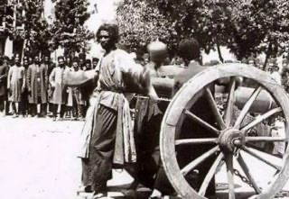 На картинках в школьных учебниках, посвящённых усмирению британскими колонизаторами восстания сипаев в Индии (1857-59), изображены душераздирающие сцены казни пленных индусов. Их привязывают к жерлам пушек, откуда должен раздаться смертоносный выстрел, разрывающий тело несчастной жертвы на куски.