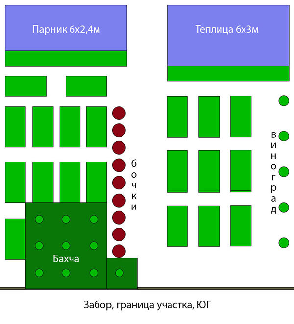 Вот такой пока вырисовывается план. Может что-то резко стукнуть в голову и частично он поменяется)) Друзья, а вы устраиваете севооборот в теплицах? Как приноровились обслуживать двурядную посадку с односторонним подходом?
