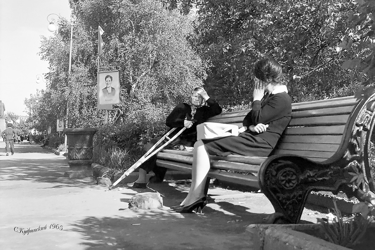 На снимке Станислава Кудринского бульвар на проспекте Победы в 1965 году. Это уже современное расположение бульвара на местности. На это нам указывает в том числе и памятник Ленину слева в кадре.