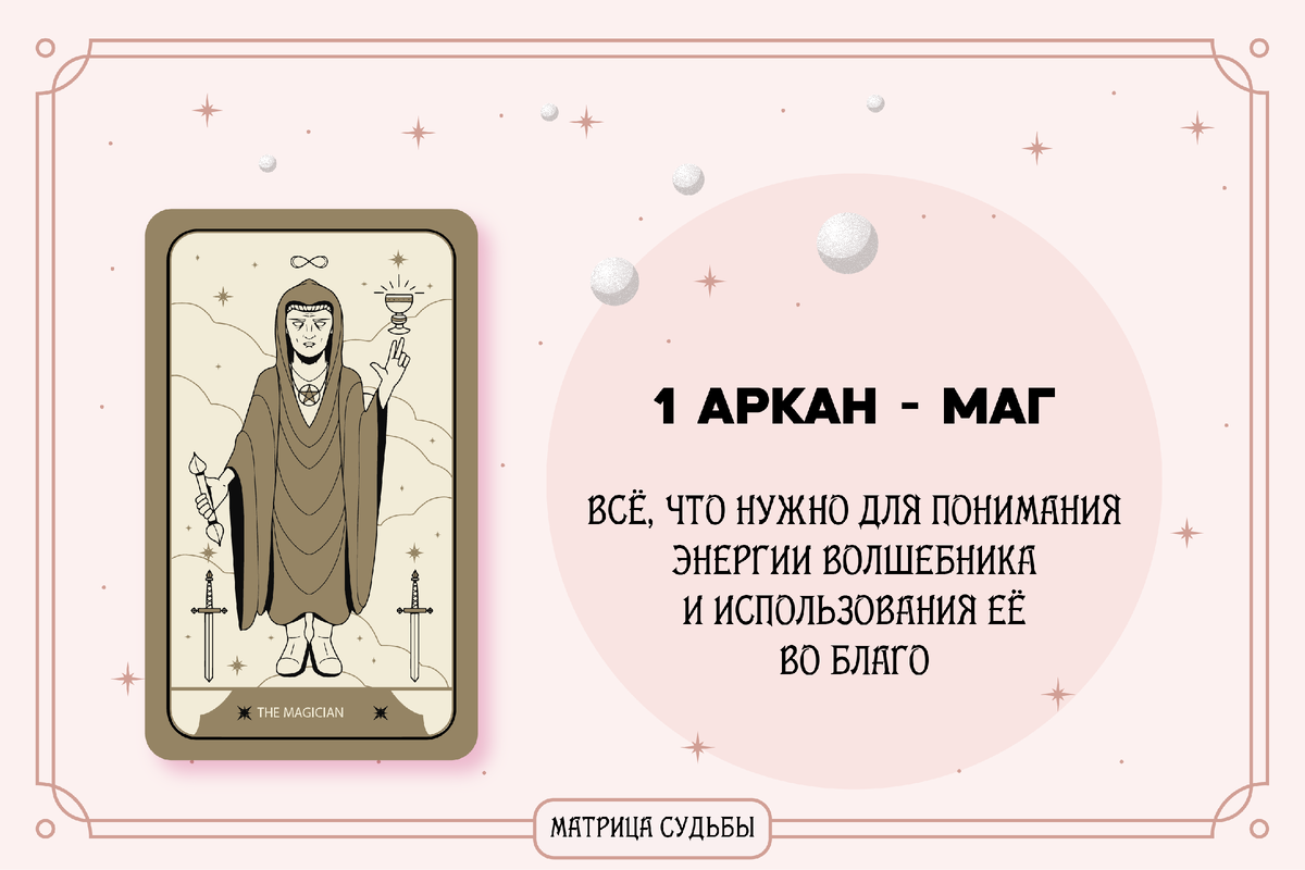 Маг – это одна из самых сильных и мощных Энергий, символизирующая личную силу, потенциал и способность изменять свою реальность с помощью внутренней силы и знаний. Маг представляет собой архетип творца, мастера и воина. Это человек, который обладает выдающимися умениями и понимает, как применять свои таланты в реальной жизни: Несмотря на огромный потенциал, который представляет собой Маг, его энергия может быть заблокирована рядом факторов: Маг черпает свой ресурс изнутри — его основное вдохновение исходит от личной силы, внутренней уверенности и осознания того, что он может управлять своей реальностью. Однако важны и внешние ресурсы: Кармический урок Мага заключается в осознании своей силы и ответственности за неё. Он должен понять, что каждая его мысль и действие имеют последствия и могут влиять на окружающий мир. Если Маг использует свою силу без учета этих последствий или для личной выгоды, он может столкнуться с блокировками и трудностями. Маг должен научиться быть честным, приним