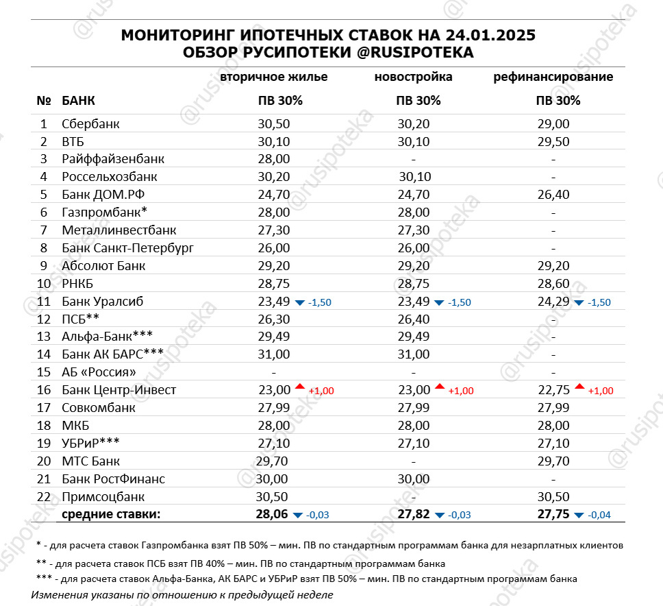 Обзор ипотечных ставок по данным на 24 января 2025 года