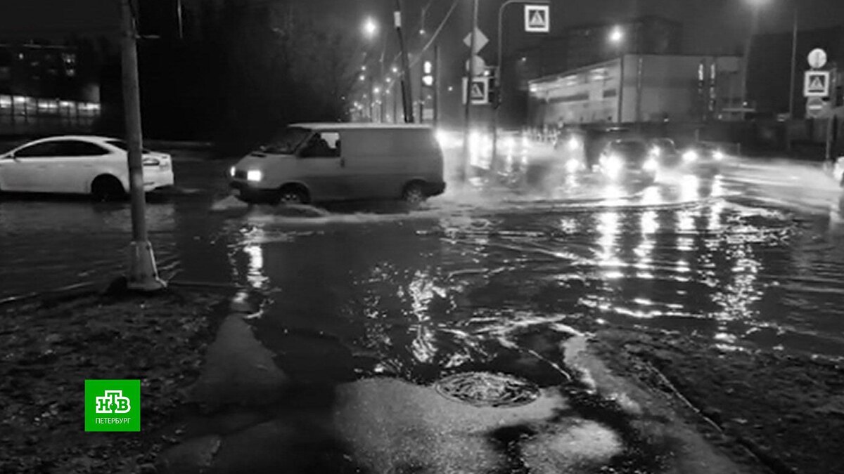 «Водоканал» объяснил, почему Пискарёвский проспект Петербурга превратился в озеро