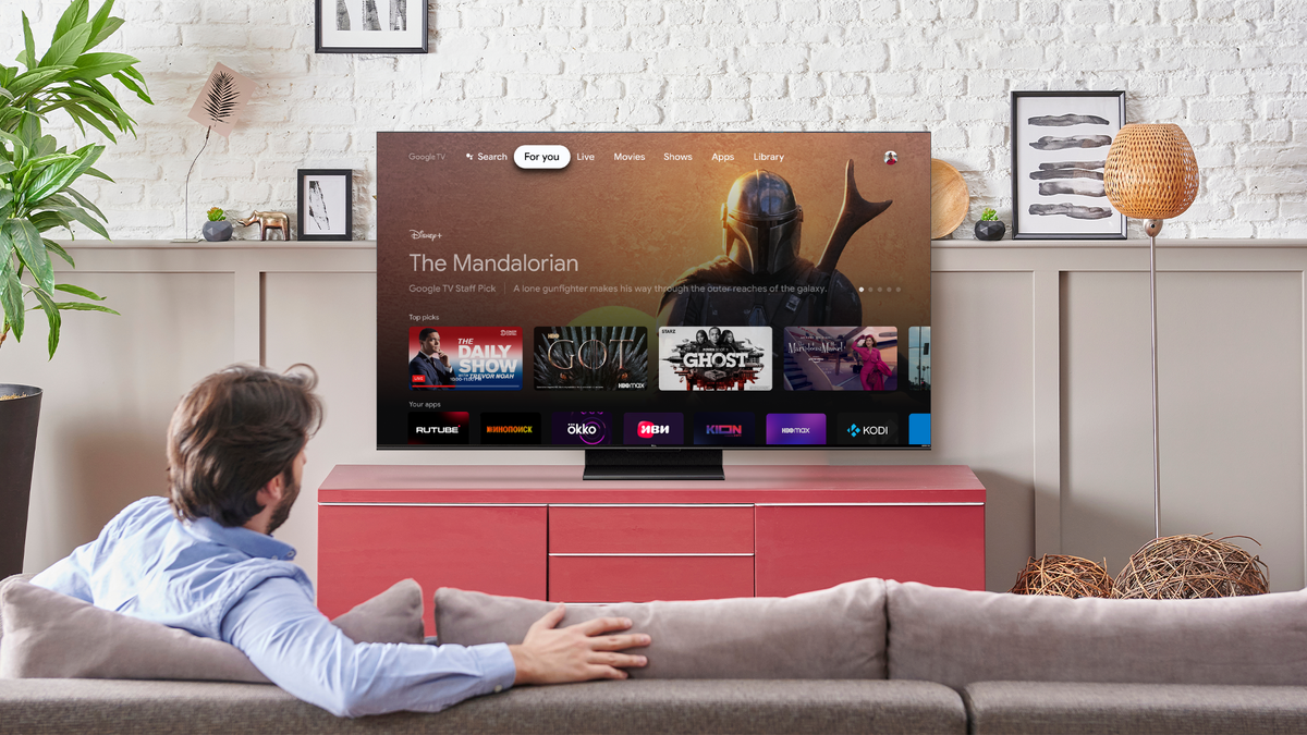 Согласитесь, удобно, когда телевизор — это не просто телевизор, а целая вселенная любимого контента. Google TV подарит именно такое ощущение. Рассказываем про самые крутые фишки этой системы. Google TV объединяет ваши любимые приложения, подписки, фильмы и сериалы, предлагая персонализированные рекомендации. Вы можете добавить понравившиеся каналы в избранное, а интересный контент — в список просмотра, который легко найти в разделе «Библиотека». Список автоматически отображается на всех устройствах, привязанных к вашему аккаунту, будь то компьютер, смартфон или телевизор. Алгоритм анализирует предпочтения на основе просмотренного контента, поисковых запросов и даёт рекомендации лично под ваши вкусы. Например, если вам понравилась какая-то комедия, он предложит похожие варианты, которые, скорее всего, пополнят список ваших любимых фильмов. Осторожно, есть риск надолго зависнуть в компании Google TV! Не всегда удобно тянуться к клавиатуре, когда вы уютно устроились перед