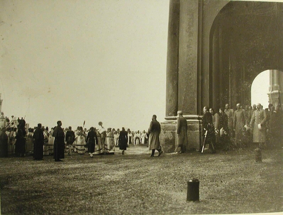 Утром 19 января 1905 года Николай II принимал участие в богослужении по случаю Крещения Господня. Царь вышел через специальный иорданский подъезд Зимнего дворца к Неве — во льду находилась крестообразная полынья (это называется иордань), а на самой набережной стоял царский шатер. Появление государя и водосвятие сопровождалось артиллерийский салютом из Петропавловской крепости и с Васильевского острова. Стреляли пушки. Непонятно, но в одном орудии вместо холостого снаряда оказалась картечь. Она перелетела Неву, осыпала иордань и сам Зимний, оставив на нем следы. Две пули пробили стекла и залетели во дворец. Одна пуля ранила городового. В своем дневнике Николай II оставил такую запись: «Вышли к Иордани в пальто. Во время салюта одно из орудий моей 1-й конной батареи выстрелило картечью с Васильевского острова… Один городовой был ранен. На помосте нашли несколько пуль, знамя Морского корпуса было пробито». Сам император находился на волосок от смерти, потому что перебитое пулей знамя Мор