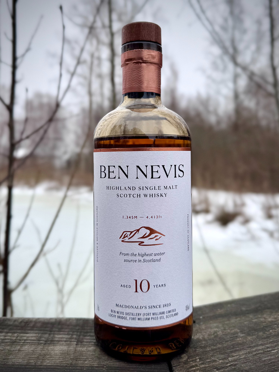 Всем привет. Сегодня у нас в гостях виски из Хайленда. Классический Ben Nevis разлитый в возрасте 10 лет, который идеально подойдет для того, что бы познакомиться со стилем винокурни, которая к слову расположена у подножия самой высокой горы в Шотландии. На высоте 1345 метров над уровнем моря вода для виски имеет свой источник, который фильтруется через торф и продолжает течь через гранит и камень. Бен-Невис был основан в 1825 году Джоном Макдональдом, которого называли Длинным Джоном только из-за его роста. С 1910 по 1986 год произошло много смен владельцев, сегодня Бен Невис принадлежит японской компании Nikka. Новые владельцы вложили много денег и превратили его в маленькую жемчужину после того, как он вновь открылся. Наш образец выдерживается 10 лет в дубовых бочках, как мне кажется преимущественно в бурбонных, а может и только в них, инфу не нашел, если кто знает черканите в комментариях. Разливается при крепости 46% vol, без красителей и холодной фильтрации. Итак погнали! Нос: м