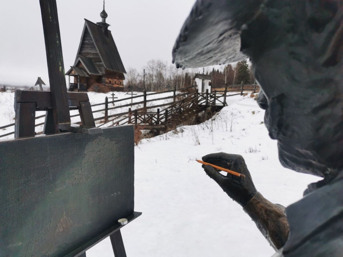 Ранее в соцсетях появилась информация о пропаже кисточки из рук скульптуры художника на горе Левитана. В частности, “Плесские ведомости” сообщили, что вместо неё в руку кто-то вложил простой карандаш – самый обыкновенный, не скульптурный, не бронзовый. Сотрудники пресс-службы УМВД выяснили судьбу отлитой в бронзе кисточки Левитана. Как оказалось, она находится в музее Исаака Левитана, уточнили в ведомстве. Фото: телеграм-канал "Полиция 37 Иваново", источник. Скульптуру на горе Левитана вблизи деревянной церкви и старого кладбища открыли в 2012 году. Мастер запечатлен за мольбертом, в процессе работы над пейзажем.