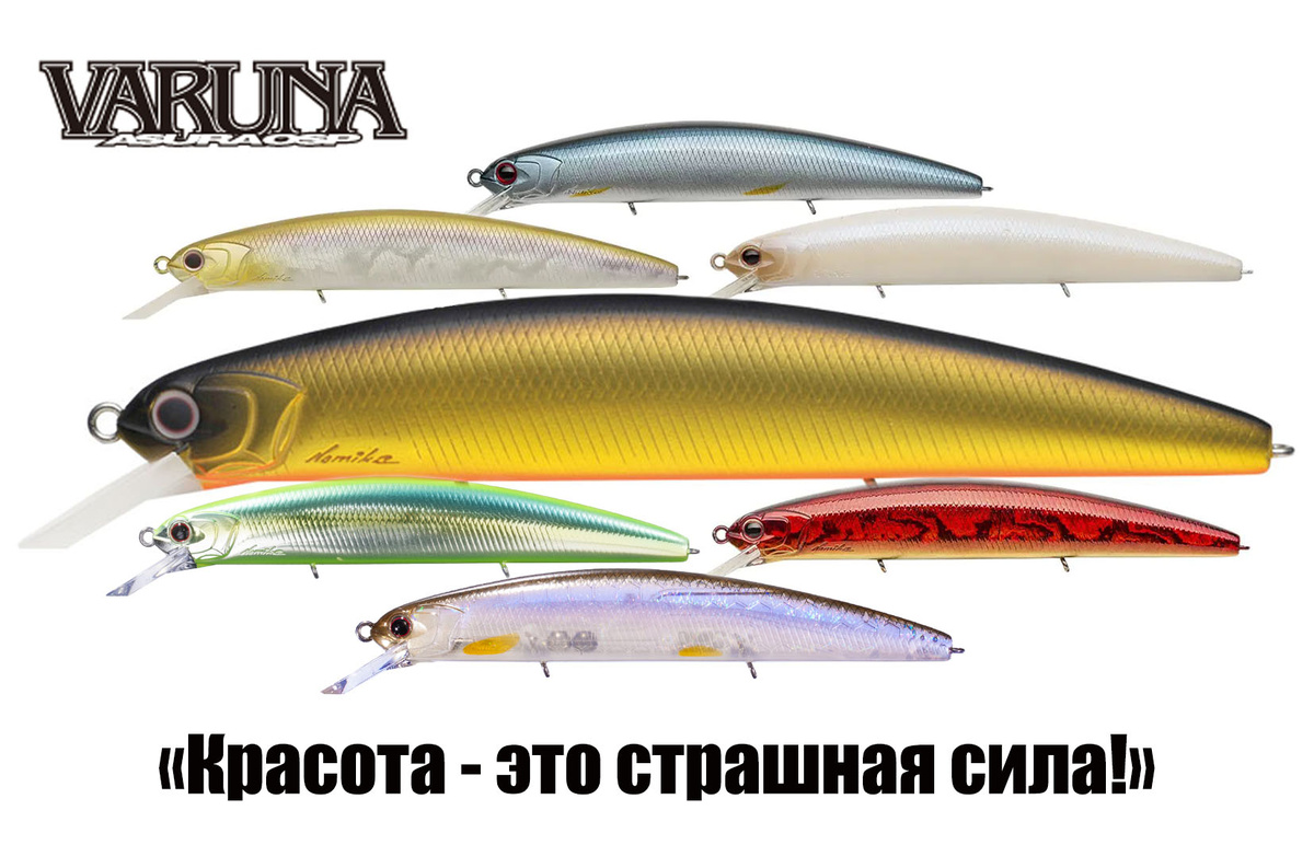 Все знают о двух версиях плавучести OSP ASURA VARUNA: Floating (F, плавающая) и Suspend (SP, зависающая). И разве можно упрекнуть рыболовов, неизменно делающих ставку на VARUNA 110SP, если она неизменно успешна в дальнем точном забросе, в провоцировании хищника как игривостью, так и гипнотическим зависанием? И кто откажется от VARUNA 110F, если такая модель абсолютно универсальна в применении и с берега, и с лодки, и в чистой воде (где она может резвиться под вашим чутким руководством), и среди подводной чащи (когда требуется аккуратно подвсплыть, чтобы обойти препятствие)? Тем более что обе версии, как убедились многие тысячи рыболовов, умеют играть самостоятельно, не требуя от новичков глубоких знаний и отточенных умений в проводках – достаточно порой просто не мешать этим «божествам», ограничиваясь даже простыми движениями удилищем. Высокая классика может быть удобной! А какой цветастой она может быть! Глубокий красный с переливами или почти прозрачный, в котором видно биение «серд