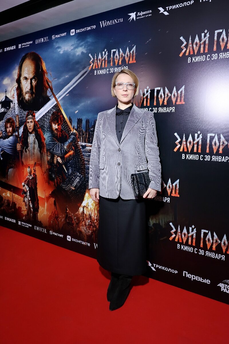 Закрытый показ «Злого города» посетили не только создатели и каст фильма, но и приглашенные звезды. Среди них Владимир Мединский, Андрей Мерзликин, Дмитрий Дюжев, Олеся Судзиловская, Алсу, Вадим Галыгин, Виктория Маслова, Яна Чурикова и другие. Мероприятие прошло в кинотеатре «Каро 11 Октябрь», площадка была оборудована тематическими декорациями в древнерусском стиле, а по всему периметру дежурили монгольские и русские воины в аутентичных одеждах. Яна Чурикова появилась на премьере в строгом утонченном костюме. Сверху — серый удлиненный пиджак, а снизу — прямая черная юбка. В качестве аксессуаров ведущая использовала очки в светлой оправе, небольшой клатч и минималистичные серьги. Яна Чурикова. Фото: пресс-служба Аркадий Укупник посетил закрытый показ «Злого города» в компании супруги. Музыкант оделся в светлых тонах — бежевые брюки, водолазка и кремовая рубашка. Жена Наталья выбрала джинсы, свитер, объемную сумку и подвеску, гармонирующую с общим образом. Аркадий Укупник с супругой. Ф
