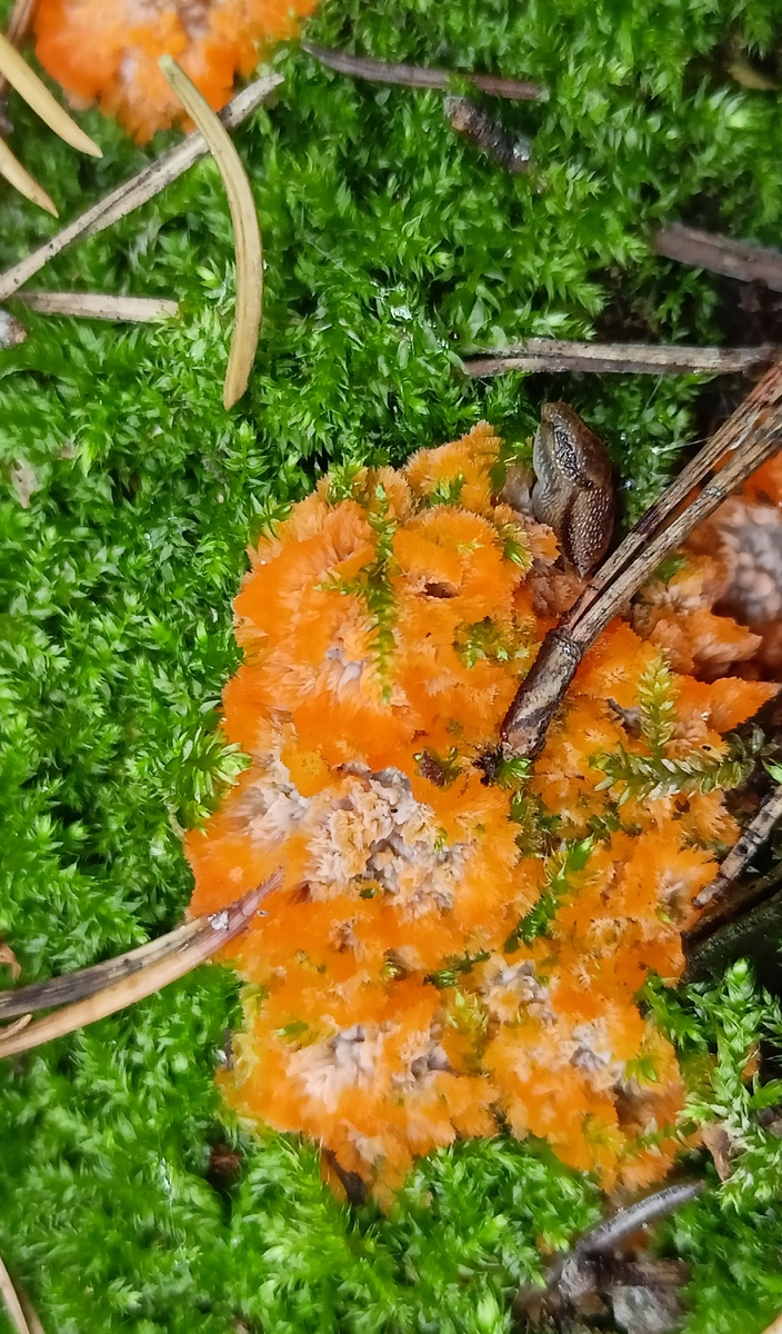 Среди грибов, а наука объединяет под этим названием организмы, имеющие общий принцип роста, размножения, роли в экосистеме, есть не только шляпочные, у которых мы можем рассмотреть шляпку, ножку, но и такие, где плодовое тело представляет собой тонкую плоскую корочку, которую даже нельзя взять в руки, так крепко она держится на субстрате. О таком грибе, под названием Флебия, я сегодня хочу немного рассказать. На снимках показан очень красивый, мохнатый вид Флебия Радиальная, или Флебия Лучистая, Phlebia Radiata. Сегодня проводится множество исследований ферментов, с помощью которых гриб расщепляет лигнин. Подобно другим древесным грибам-сапротрофам, Флебия перерабатывает мёртвую древесину, вызывая Белую Гниль. Растёт гриб на пнях, стволах и лежащих на земле и погужённых в грунт ветвях лиственных и хвойных деревьев. Распространение охватывает леса, сады и парки по всему Северному Полушарию. Начало роста плодовых тел приходится на осень и зиму. Живут эти тела год. Вначале малень