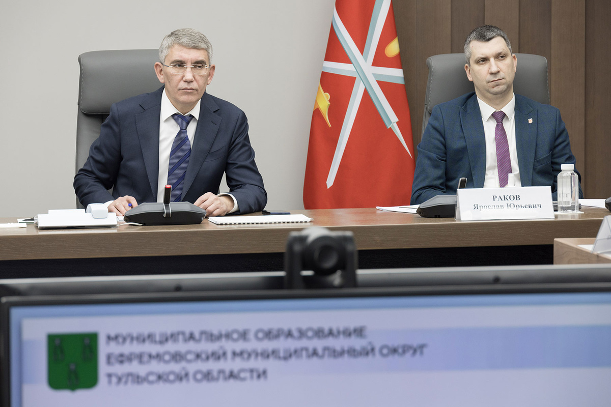 В среду, 29 января, губернатор Тульской области Дмитрий Миляев провел встречу с главой администрации Ефремова Светланой Давыдовой и членами правительства региона. На встрече обсуждались актуальные вопросы и реализация местных проектов. В 2024 году в Ефремове заработал завод по переработке свинины и курятины от компании «Черкизово», который привлек инвестиции в размере 4,6 млрд рублей и создал 84 рабочих места. В 2025 году планируется закупка нового оборудования на сумму свыше 500 млн рублей. Также компания «Астра» открыла новый цех, а «Кубаньмасло» построила два зернохранилища с инвестициями 49,2 млн рублей. В рамках нацпроекта «Жилье и городская среда» благоустроены 14 дворов и несколько общественных пространств на сумму 222,3 млн рублей. В этом году запланированы работы по улучшению тротуаров и установке детских площадок. В сфере образования завершен капитальный ремонт нескольких учреждений, а также приобретено новое оборудование для внедрения цифрового обучения. В рамках программы «