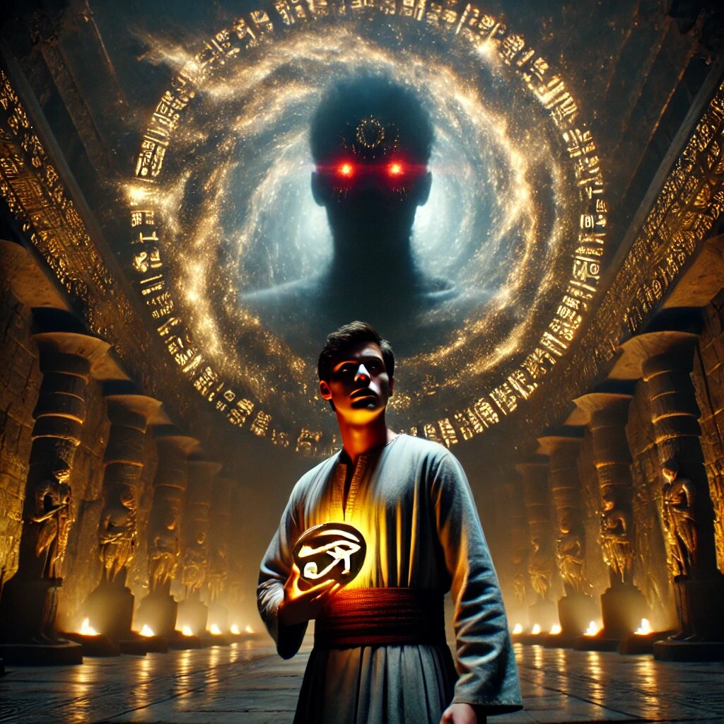 Когда тени исчезли, мир вокруг изменился вновь. Перед ним выросли массивные колонны, покрытые древними письменами. Они не были похожи на те, что он видел в храмах — символы были старше, чем сама письменность Египта.