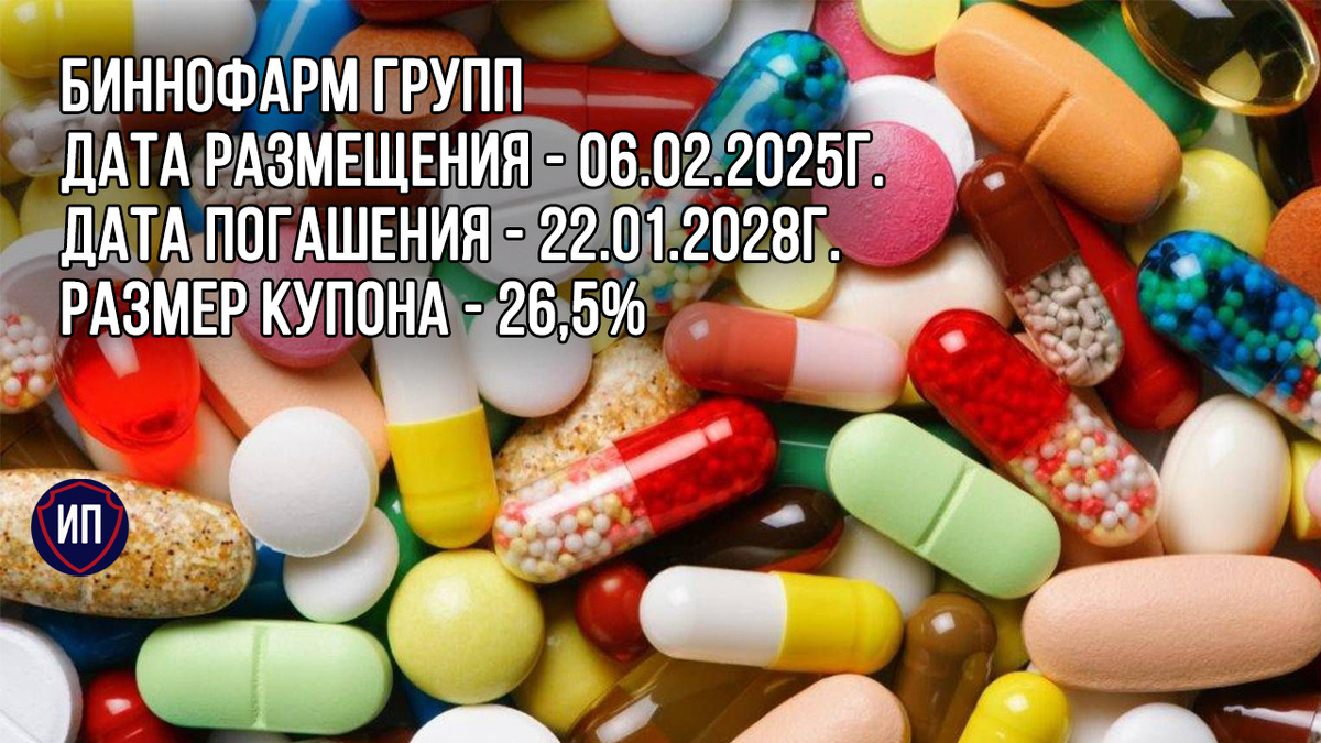 Сразу 7 организаторов размещений облигации взялись за размещение именно этого выпуска. Я не припомню когда еще банки и инвестиционные компании так массово помогали компании. Биннофарм Групп - российская компания, занимающая второе место в рейтинге фармацевтических компаний-производителей на розничном рынке РФ. Портфель Биннофарма включает в себя пять производственных площадок, расположенных в России. Компания производит более 370 млн упаковок лекарств ежегодно. Основные продажи приходятся на розный сегмент - 80%, на экспорт и государственные закупки остаются по 10% в структуре продаж. Главный акционер компании - наша многоуважаемая АФК Система, у нее ведь столько прекрасных активов, начиная с Сегежи и заканчивая МТС 😜 Потребление лекарств из года в год только растет, инфляция способствует росту выручки фармацевтических компаний, а значит надо более детально присмотреться к выпуску. 👀Что там по выпуску? 💊Дата размещения - 06.02.2025г. 💊Дата погашения - 22.01.2028г., "классическое"